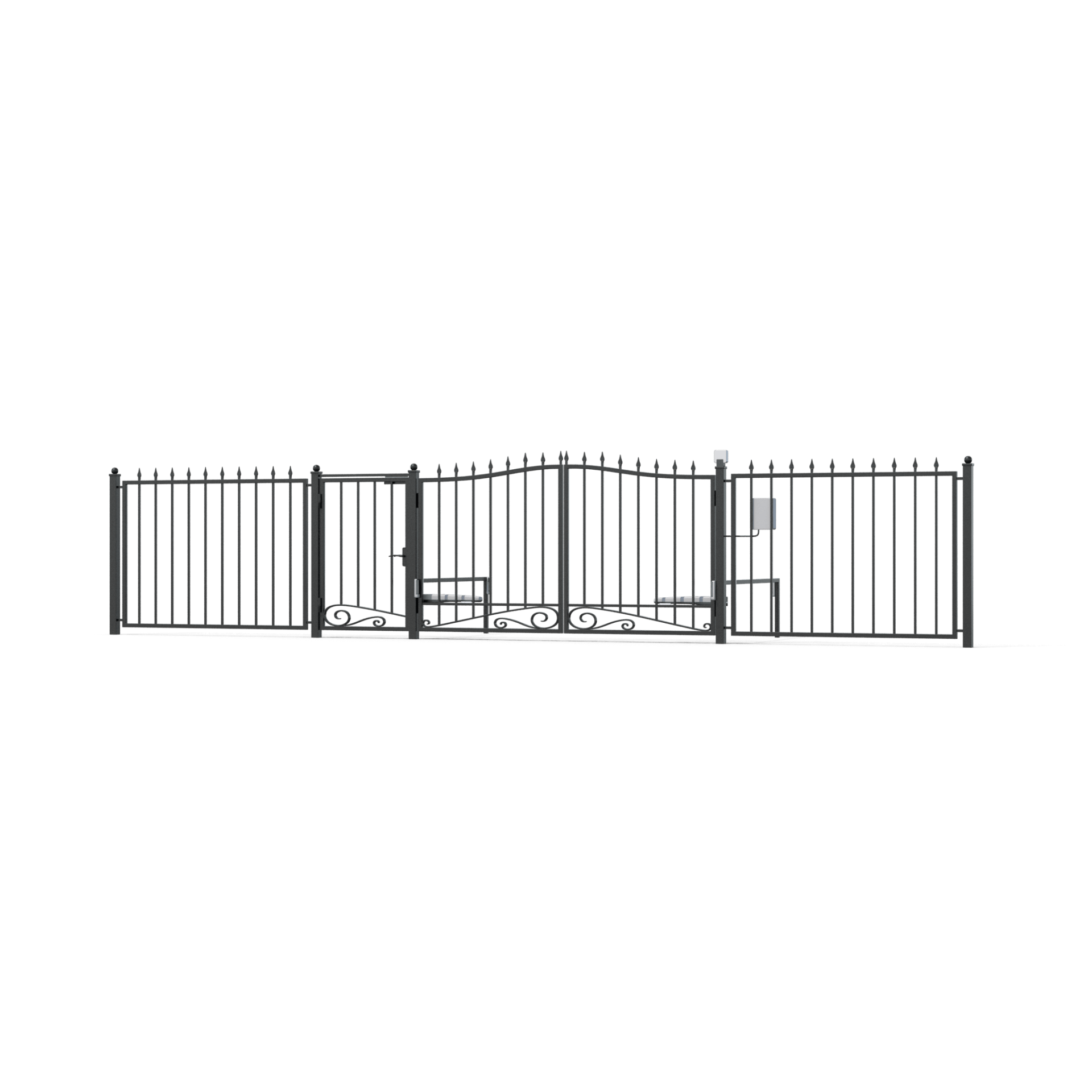 Swing Gates traditionally swing inwards, the same direction as the traffic is entering. There is the option to direct a gate to swing outward if the property calls for it. These must be set off the road to give enough room for the gates to open.